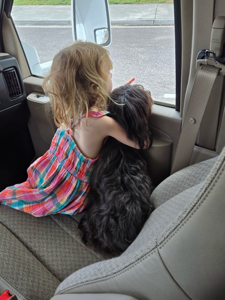 Odette loves her bed. We are ready to ride!Even Kitty is ready.We stopped at Gilchrist Blue Springs State Park.