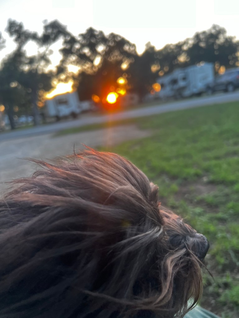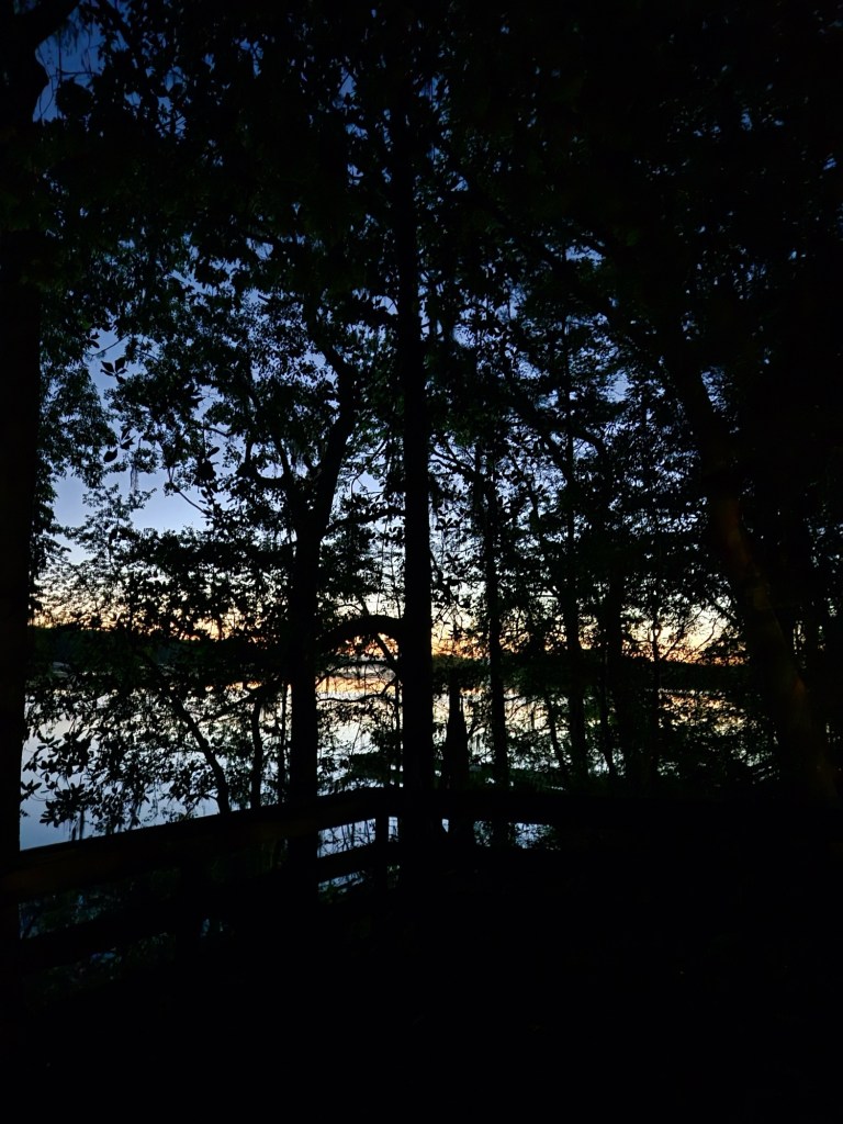 We linger a bit at Lake Talquin, and I’m so entranced by the sunrise I forget about taking a pic. There are hundreds of birds chirping sweetly, and a mist is laying on the surface of the lake.