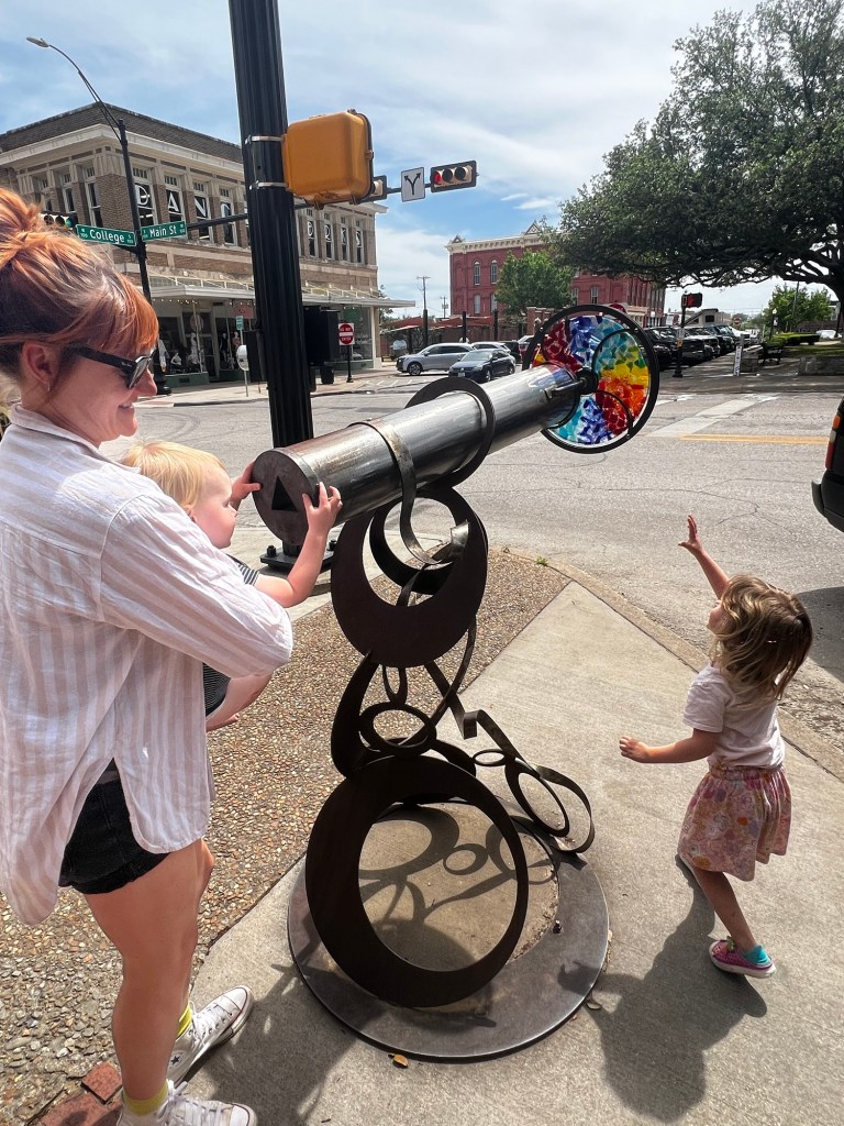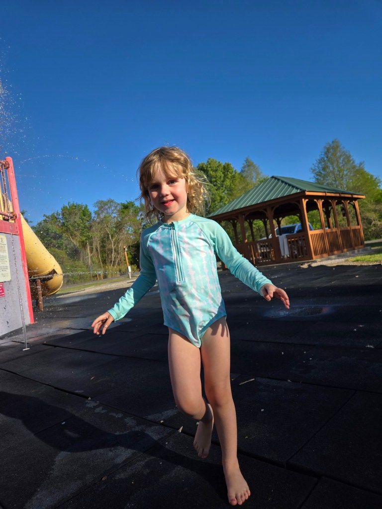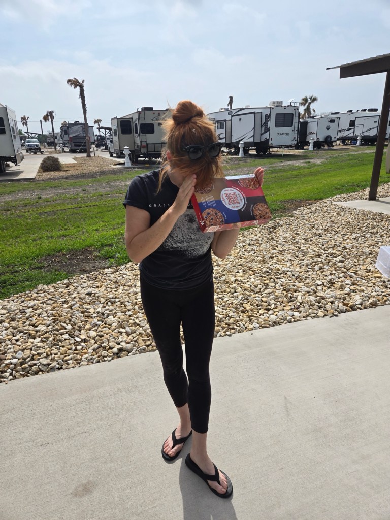 When we arrive at Southwood RV, we are frazzled. The kids were pissed off all day, and the traffic on I-10 was terrible. Even rerouted, it was long and slow. When we arrived, a very nice man named Simon came by and helped us check in. He and Leanne live in a big Coleman right across from us. It has a nice porch and a big red umbrella. Hot showers in their clubhouse were a godsend.