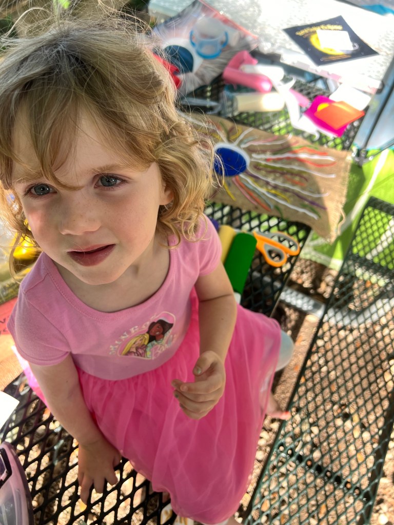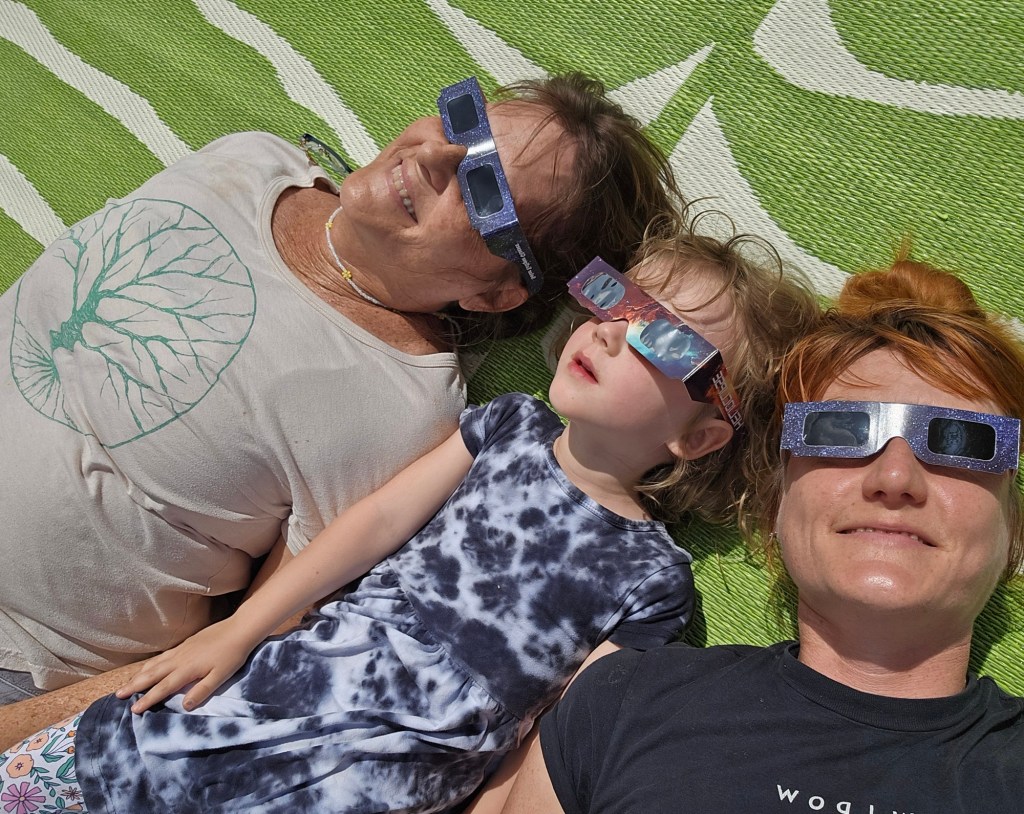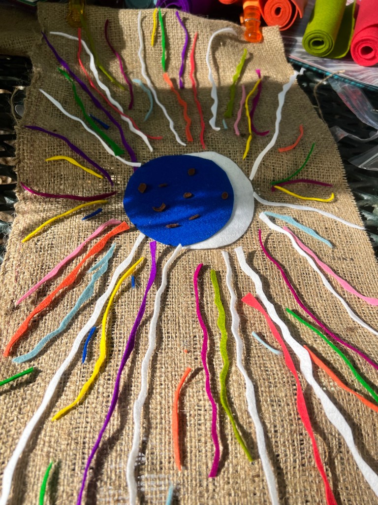 A magical afternoon crafting a flag to fly during the eclipse.We like all the colors.We also like to rest.