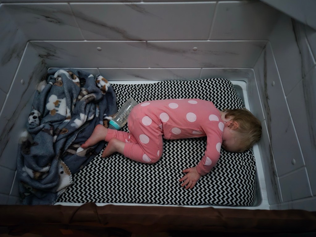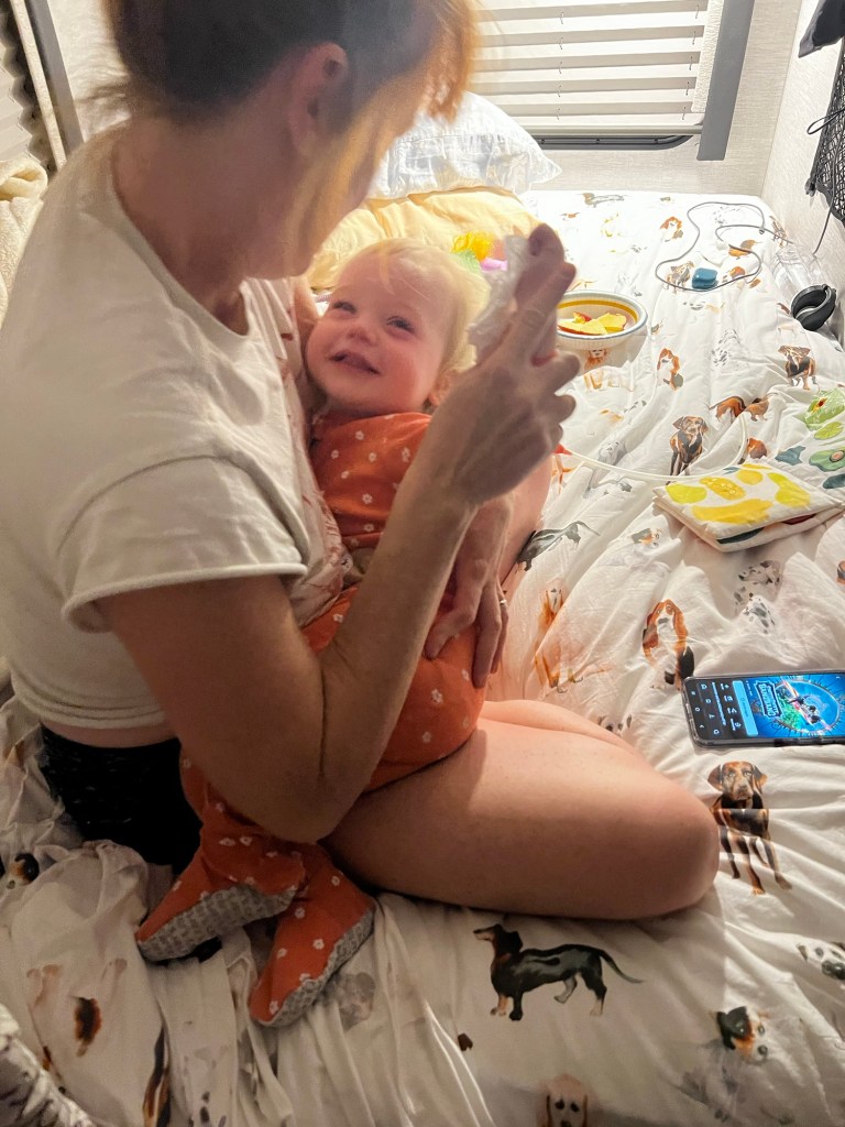 You wanna know why they make babies so cute? It’s so you don’t leave them at a truck stop. To be fair, he seems to have a slight cold. This is probably because he spent the night in wet pjs a couple days ago. More about that later. 🙄