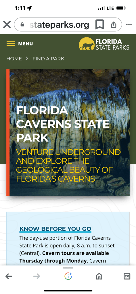 We decide to check out the Florida Caverns State Park.