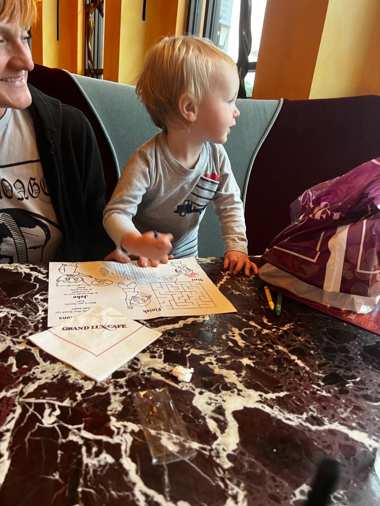 We decide to eat lunch at the Grand Lux Cafe.