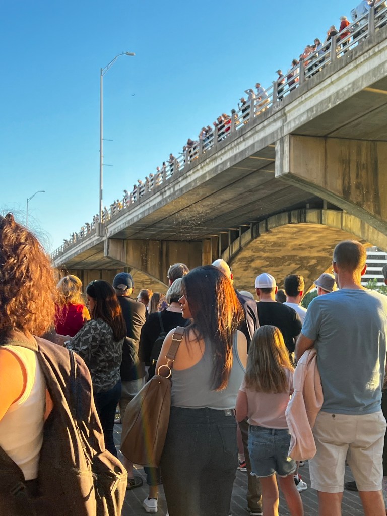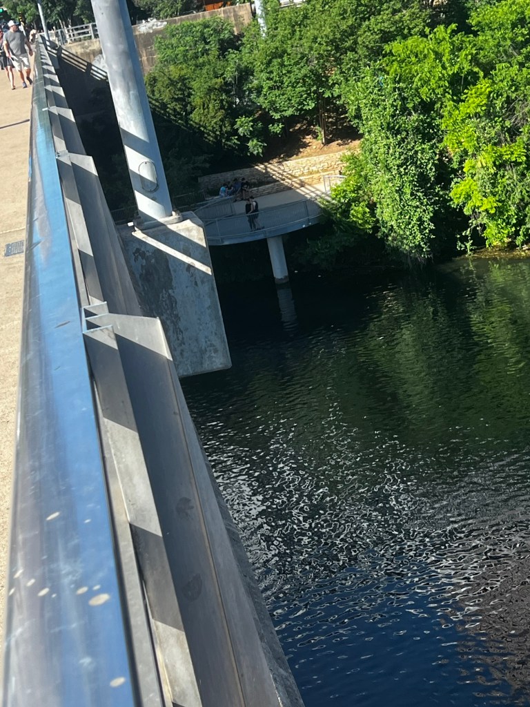 Not what I expected to see. I decide I’m hungry and head to The Well. I hike up the stairs to cross the Congress Ave bridge. It’s a 10-minute walk, and feels great after all the driving yesterday. We will figure out the bat thing after my meal. Who’s “we”?!! 😄 I left kitty at the camper. It’s just me😍