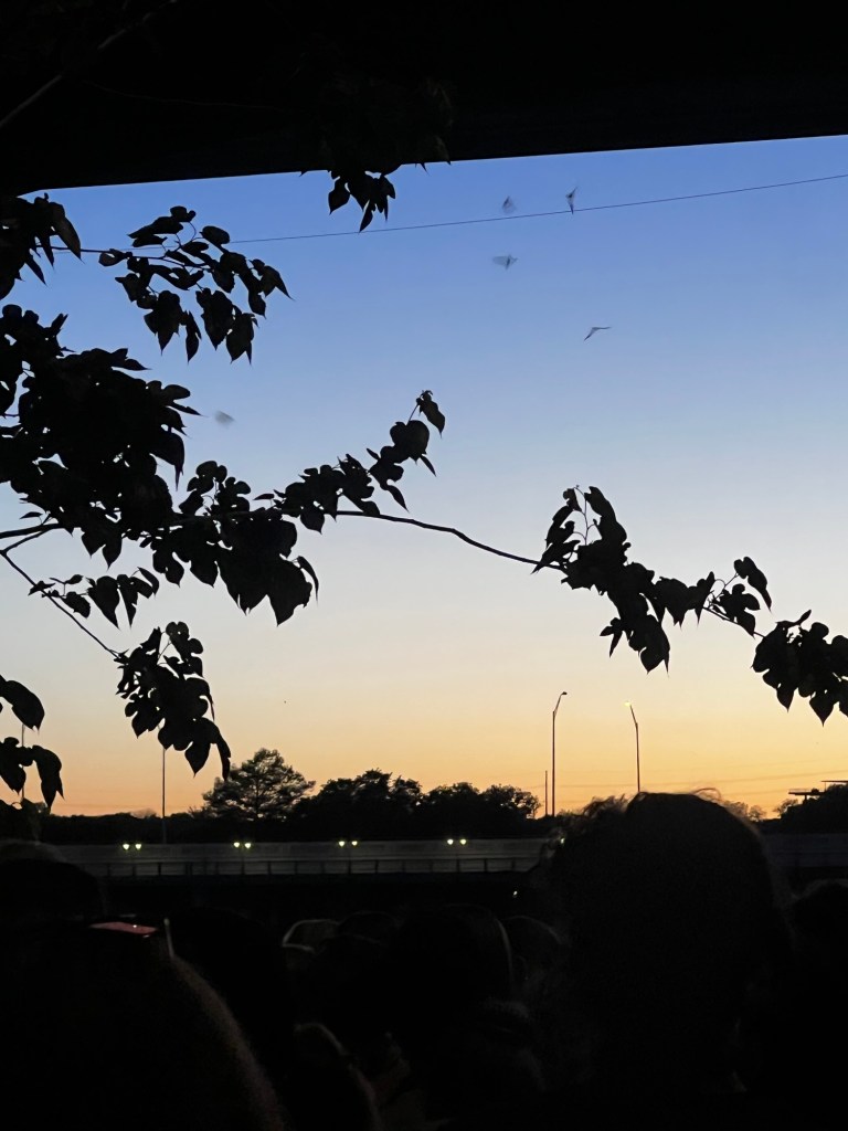 I feel safer in a big car these days. Joshua is driving a Lincoln Navigator. The car smells like I am INSIDE an air freshener packet. My drop off point will be the Statesman Bat Observatory! Heres what I expect to see: