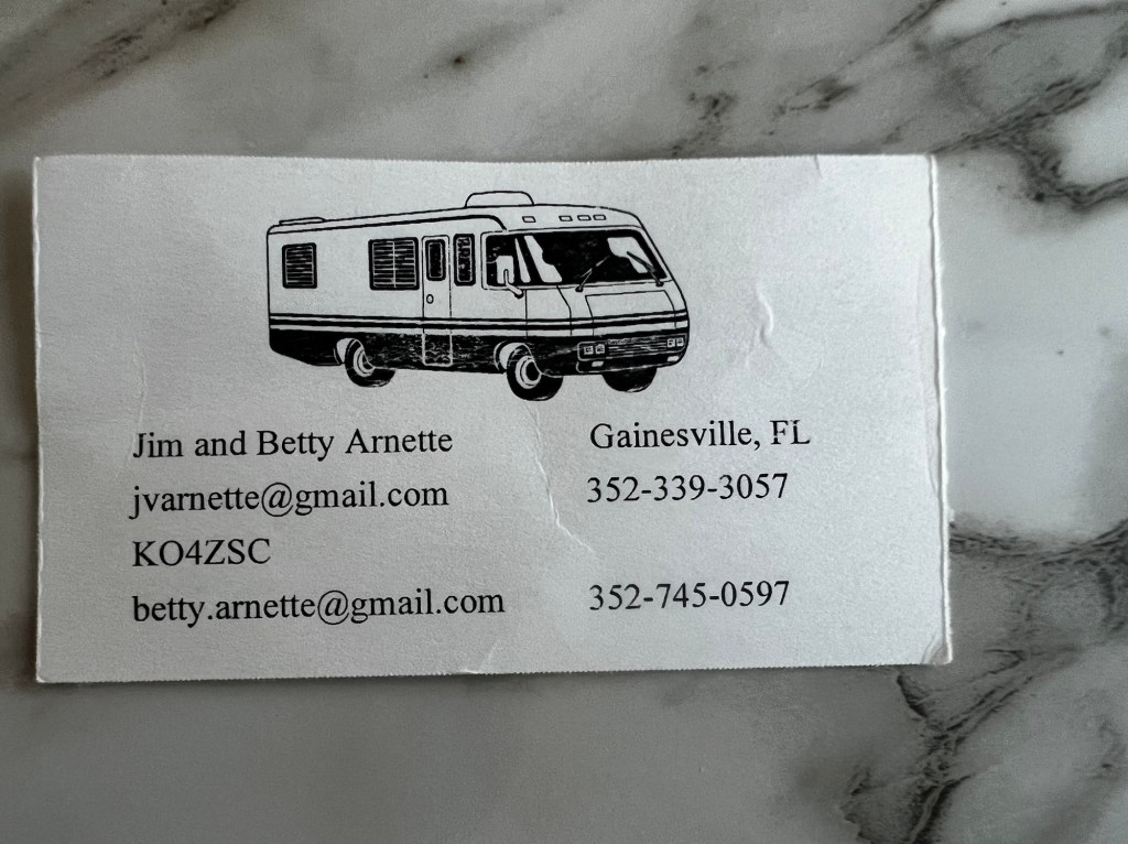 Our neighbors were very nice. After a good chat she went and got a card, and said they live in Gainesville, if I ever need a place to plug in up there !